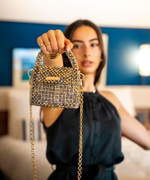 La collection Automne / Hiver 2025 s’impose comme une promenade dans l’éclat : gris fumé aux reflets métalliques, bleu profond, or discret. Chaque sac est conçu comme un instant suspendu, bien au-delà d’un simple accessoire, c’est une signature.